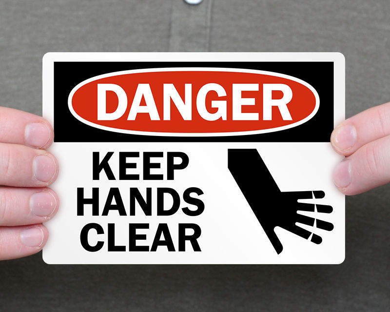 • • Find Keep Hands Clear Labels with different headers - Danger, Warning, and Caution.