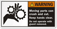 Check out all our Keep Hands Clear Labels on this page. Our OSHA and ANSI Labels warn workers to practice safety with machines associated with crushing, cutting, entanglement, and snapping hazards. Moving and rotating blades shafts, and other machine parts are dangerous to work with and everyone must be well informed of their risks before starting work.