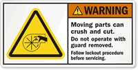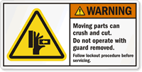 Check out all our Keep Hands Clear Labels on this page. Our OSHA and ANSI Labels warn workers to practice safety with machines associated with crushing, cutting, entanglement, and snapping hazards. Moving and rotating blades shafts, and other machine parts are dangerous to work with and everyone must be well informed of their risks before starting work.